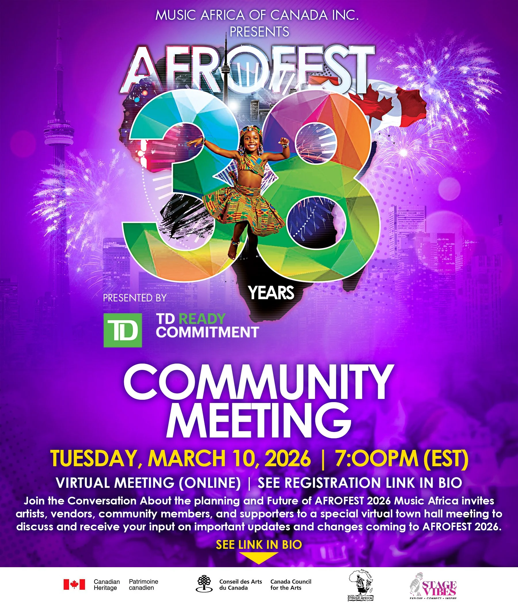 AFROFEST ignites the spirit of African culture in the heart of Toronto, one of the most culturally diverse cities in the world. AFROFEST seeks to share the rich and diverse expressions of African music and culture in an inclusive, vibrant and positive community festival setting. Through AFROFEST, a diverse audience celebrates the abundant energy of African music in an effort to cultivate community spirit and enhance the understanding and appreciation of the diverse people of Africa.